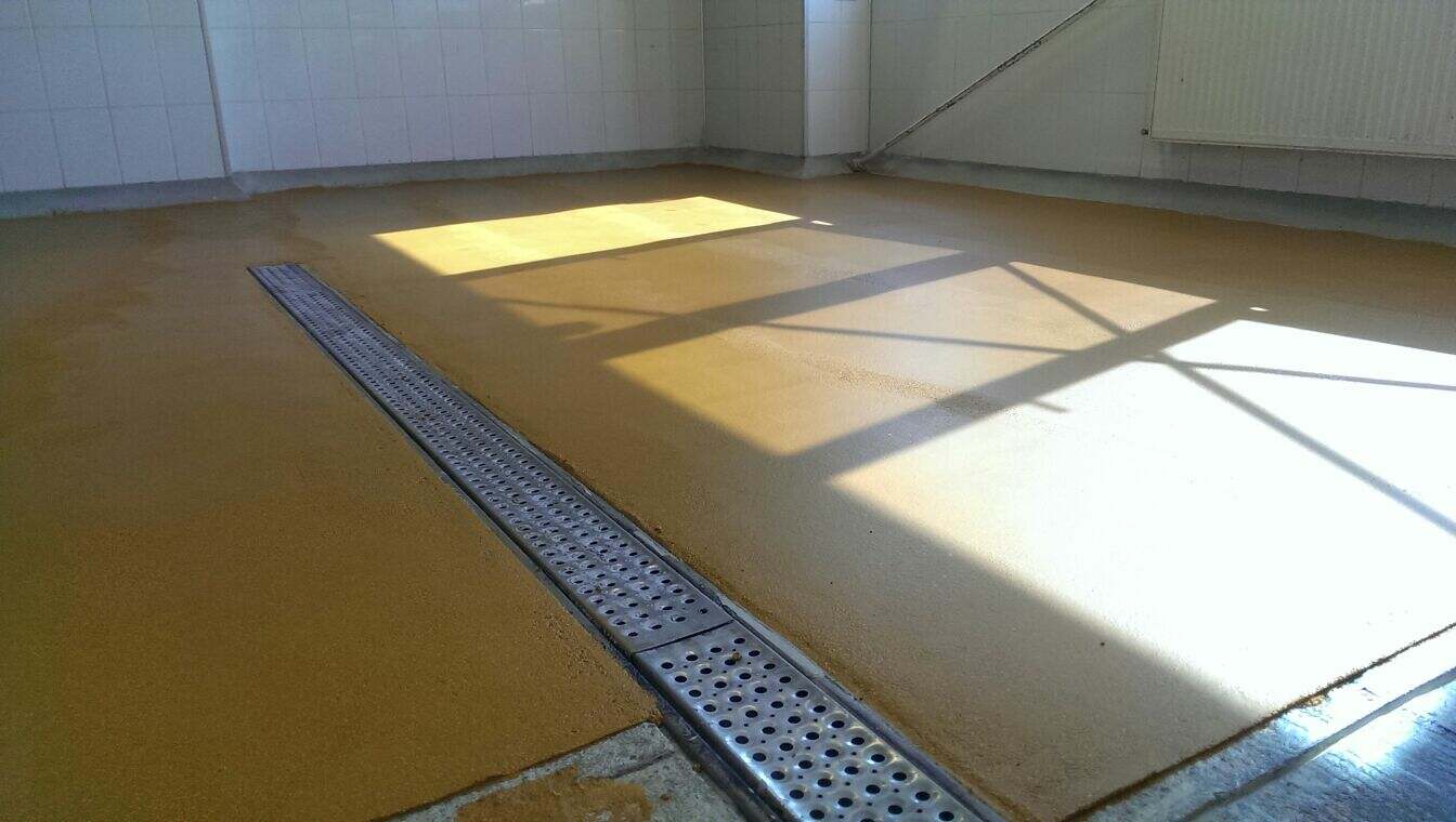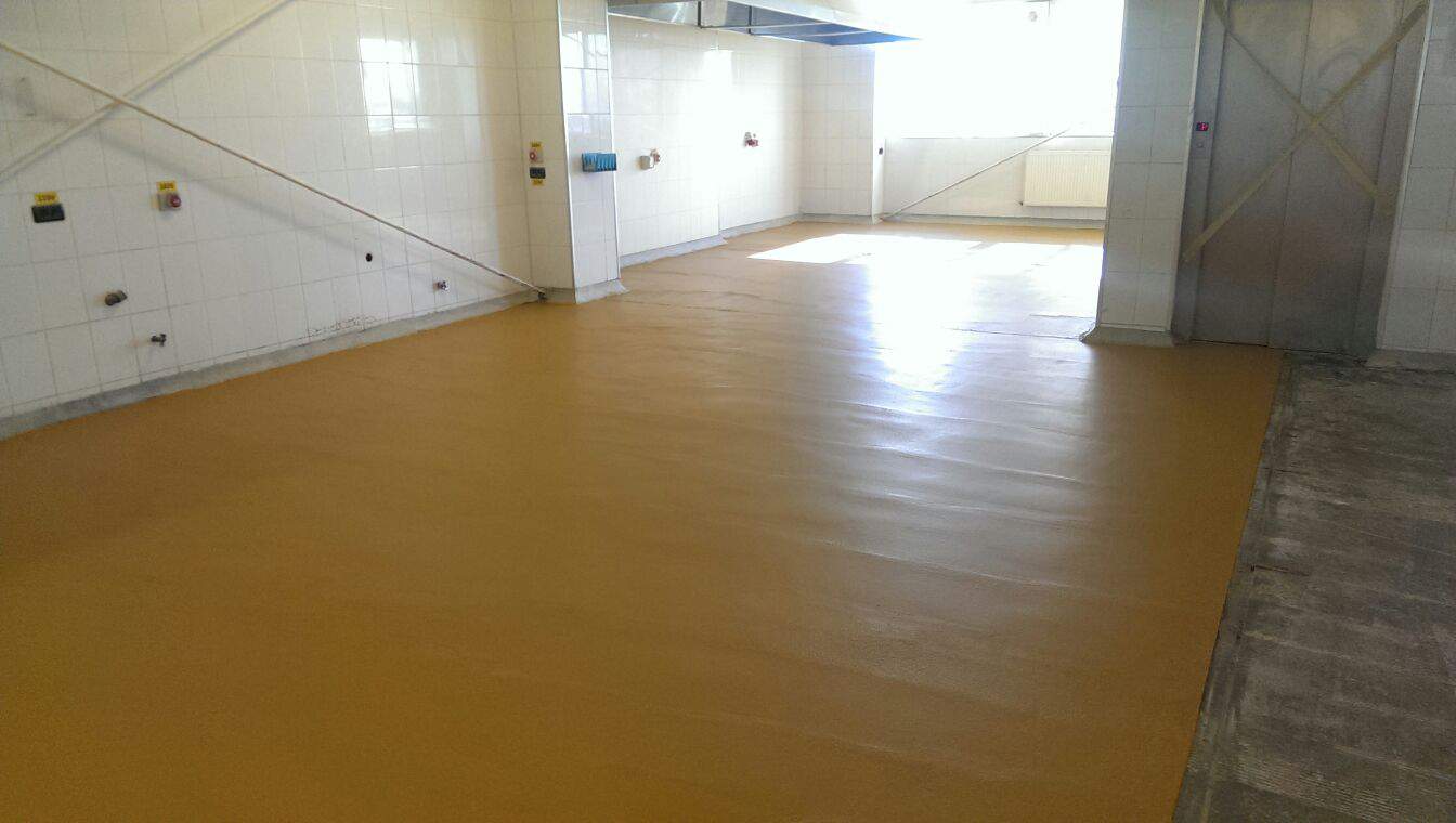 Realizare pardoseala UCRETE: sistem de pardoseală din beton polimeric pentru industria alimentară cu rezistențe deosebite la acizi, substanțe chimice, spațiu umed și diferențe mari de temperatură (suprafața: 700 mp).